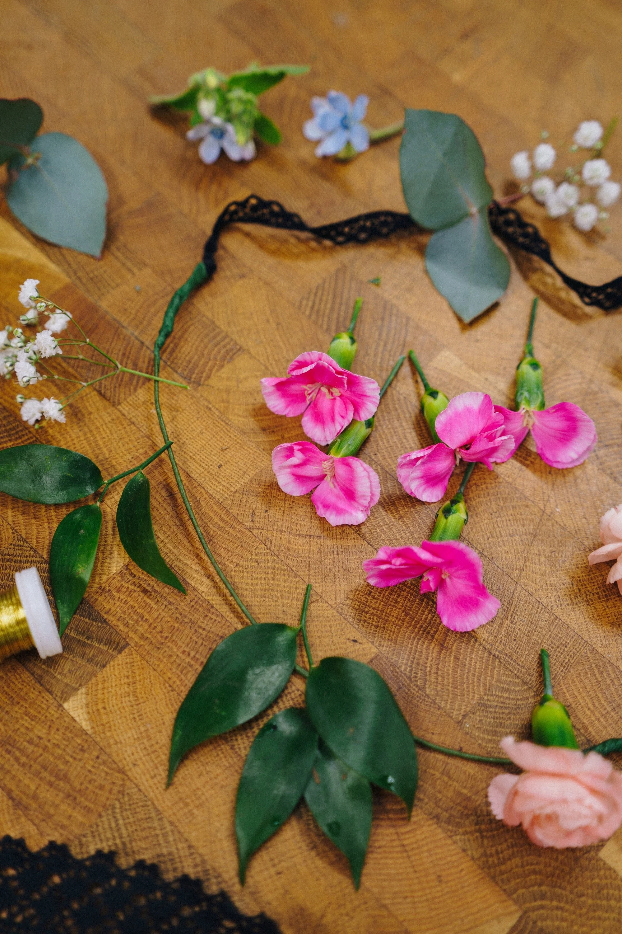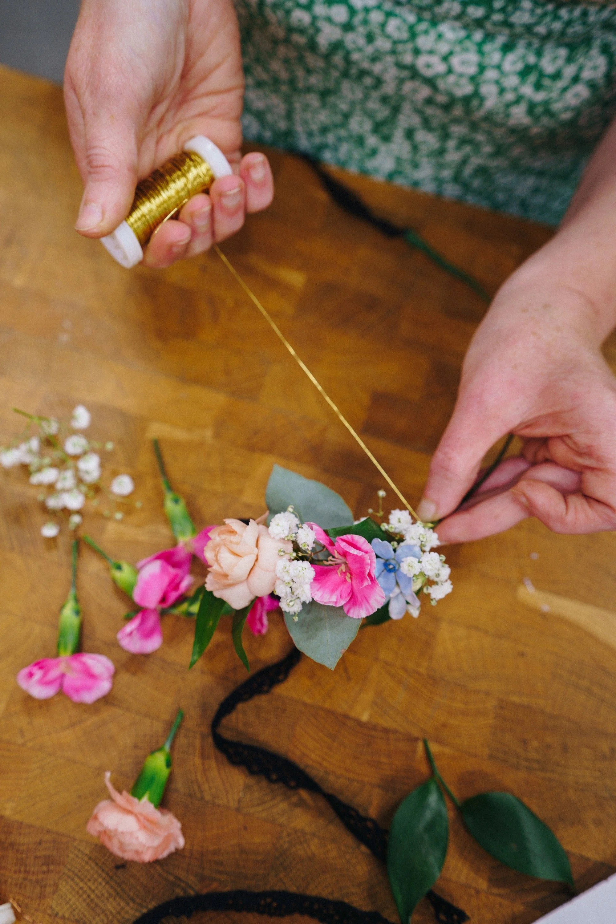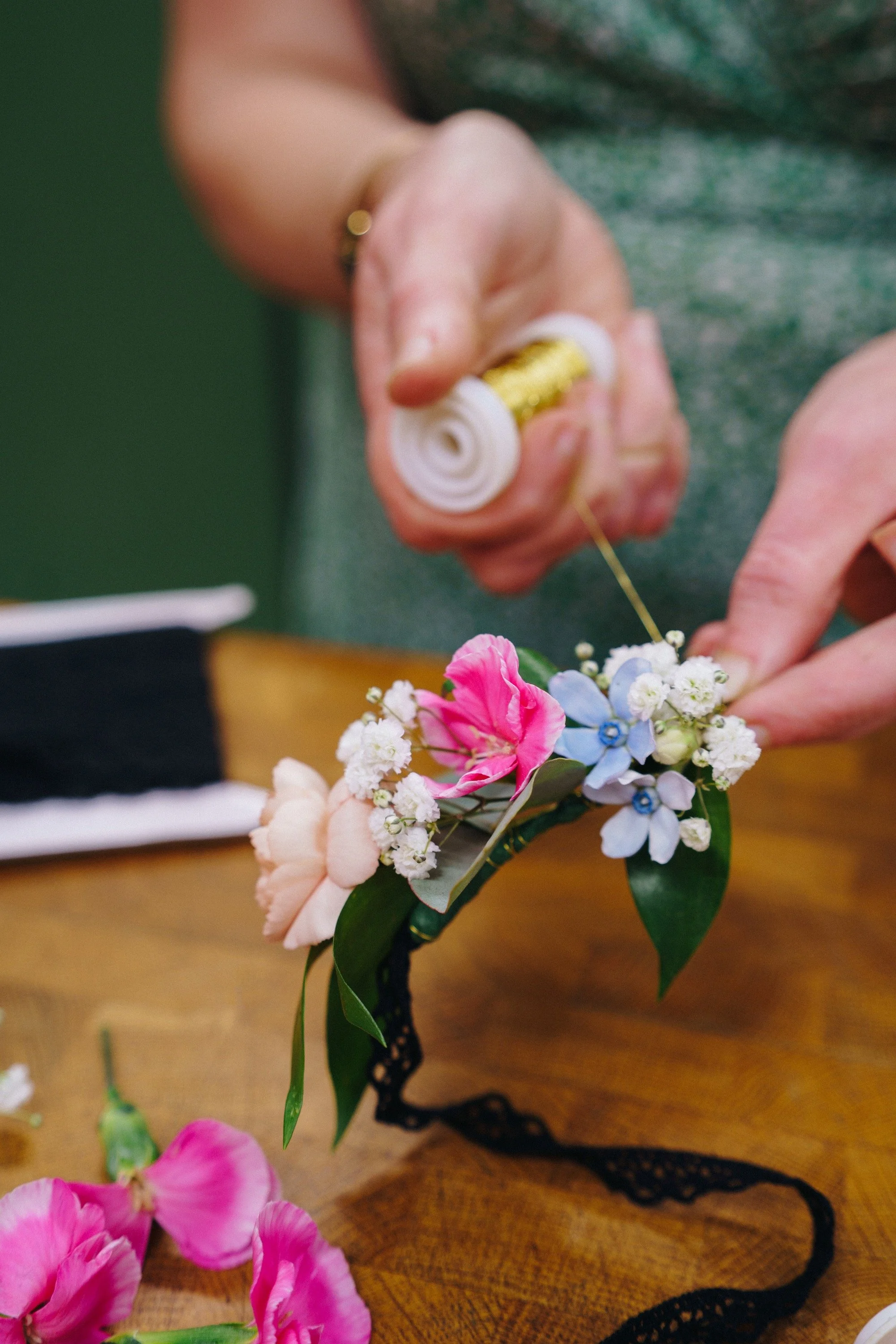 Järjestämme inspiroivia kukkatyöpajoja, joissa pääset itse tekemään. Voimme sitoa esimerkiksi kauniin hiuskoristeen, oman kimpun tai kesäisen seppeleen tai vaikkapa sesongin mukaisia kransseja. Työpajassa jokainen osallistuja saa suunnitella ja sitoa kukat itselleen, omalla tyylillä ja meidän ammattilaisten opastuksella.
